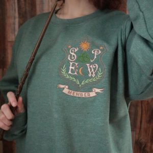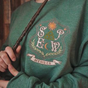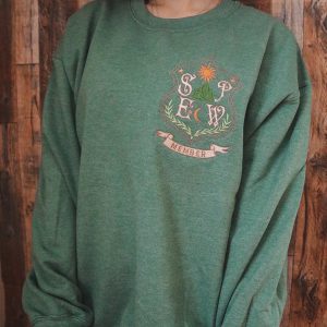 This heather green sweatshirt with a stunning SPEW embroidered crest is perfect for any fan, with it’s ultra soft material it has quickly become my favorite!