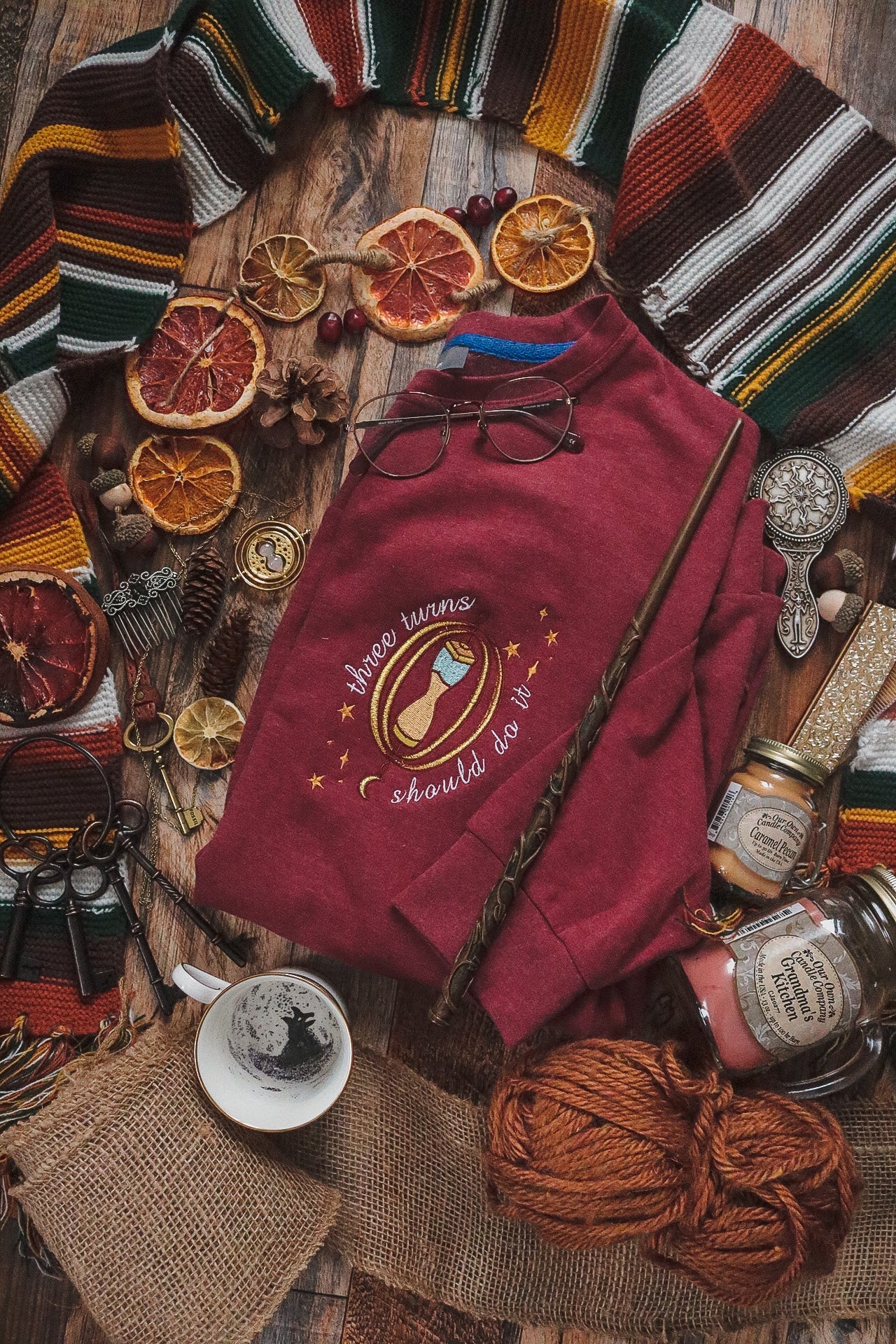 This Time Turner themed sweatshirt is embroidered with METALLIC gold thread and is to die for!! limited to ONE medium sweatshirt (this design will be returning in the future!)