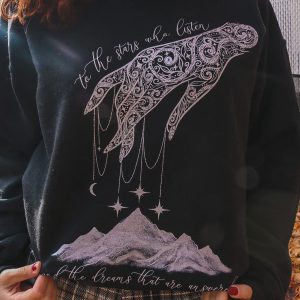 Embrace your inner Feyre Archeron with EO’s To The Stars printed crewneck! Model 5’3 and is wearing a size medium.